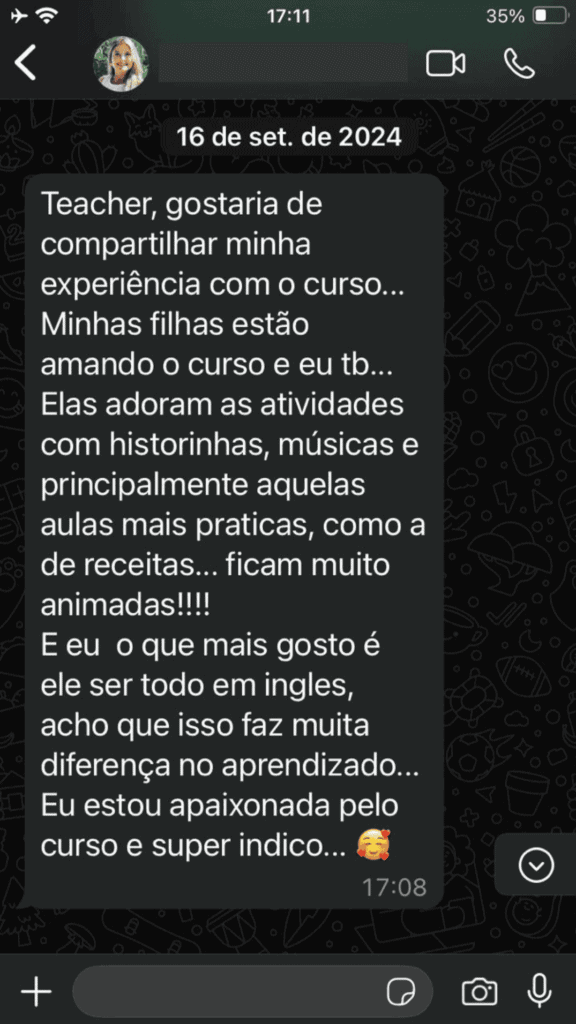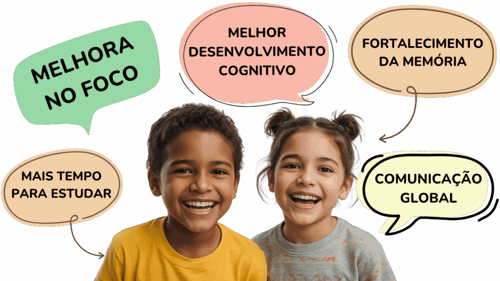 O vocabulário cresce e a criança passa a compreender e usar o inglês com mais segurança.