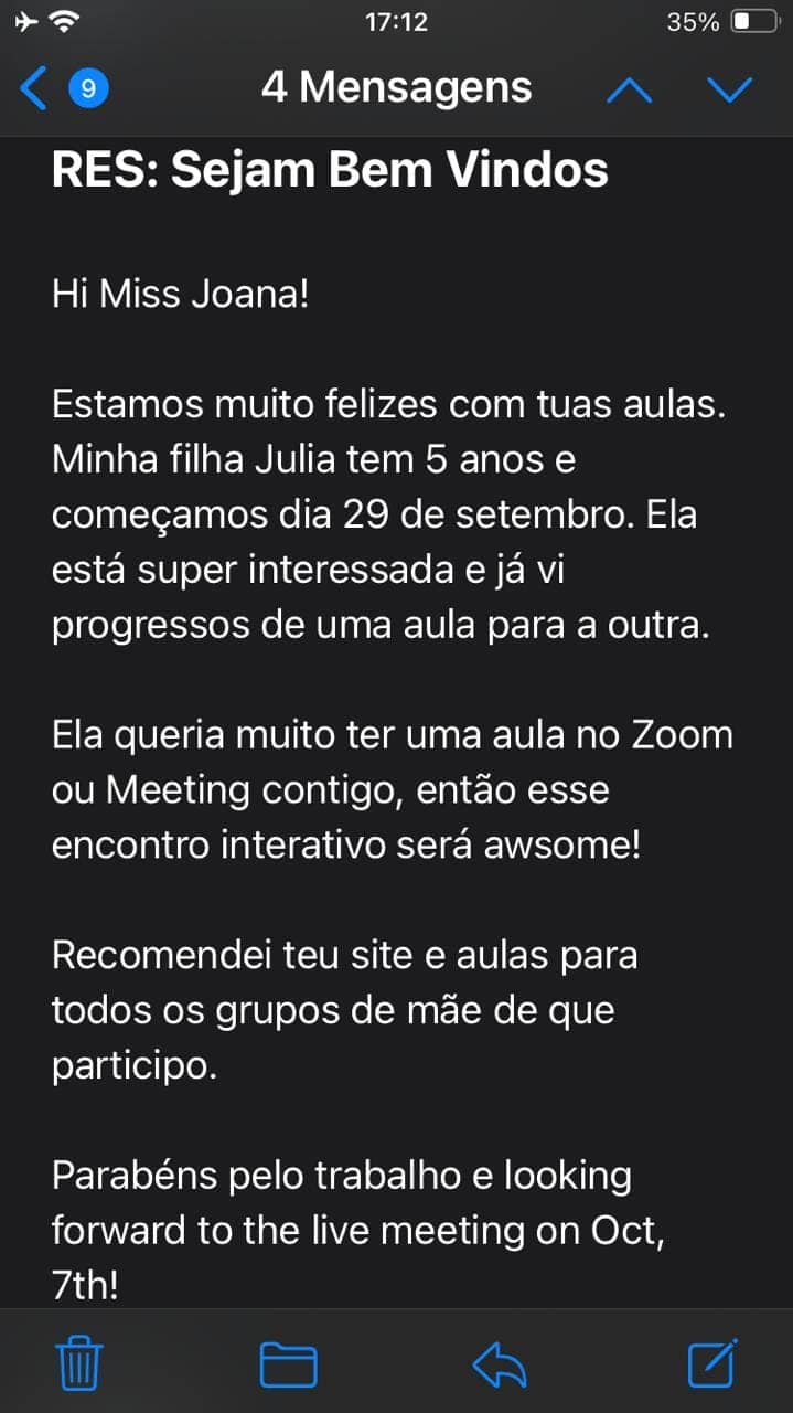Olá pessoal, tudo bem? Meu nome é Joana, sou pedagoga formada pela PUCRS em Licenciatura em Educação Infantil e Anos Iniciais. Estou muito feliz em compartilhar com vocês todo meu conhecimento na área da educação, adquirido através de muito estudo, muita leitura, viagens e mais de 20 anos de experiência ensinando crianças em inglês, no Brasil e na Espanha!