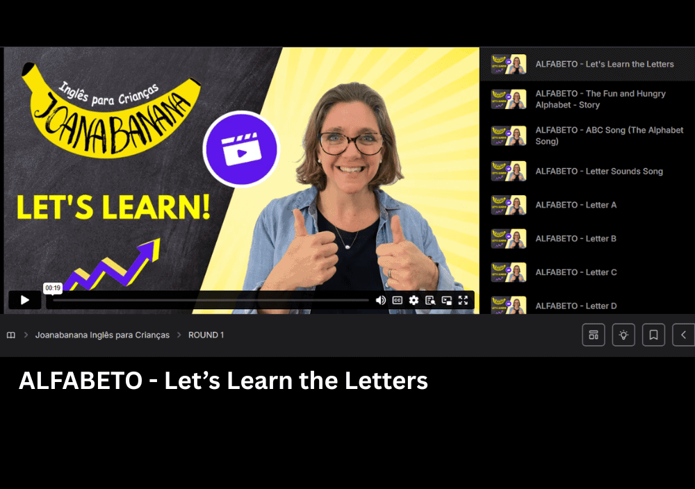 Uma seleção especial de músicas, nursery rhymes e canções originais Joanabanana, de fácil acesso em um só lugar. A música é uma poderosa ferramenta no aprendizado do inglês: divertida, cheia de rimas e altamente eficaz para memorizar vocabulário e estruturas, especialmente em temas de rotina.